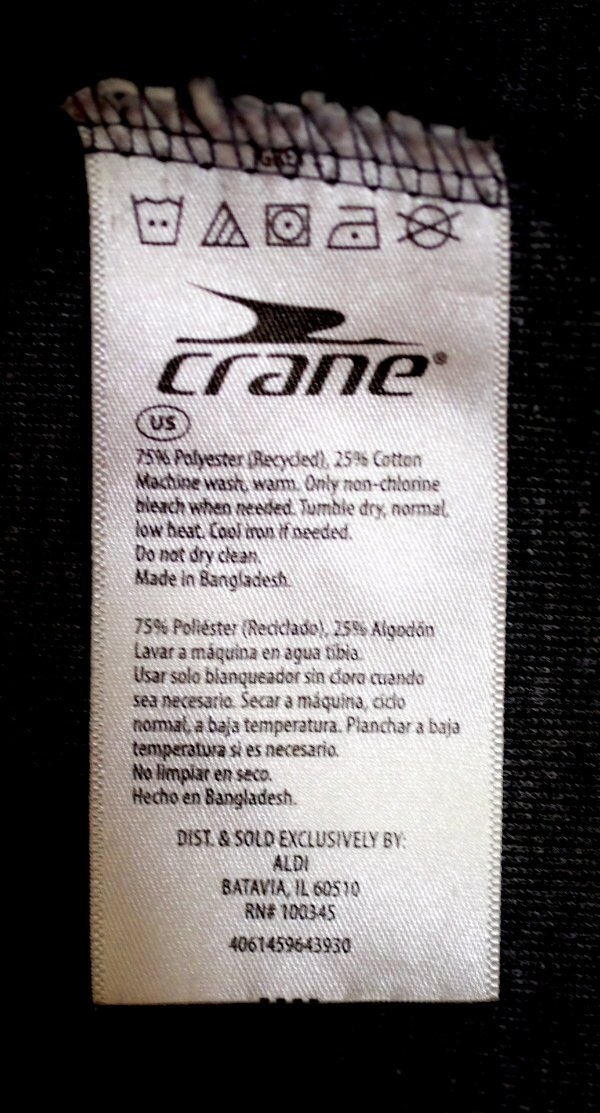 My one regret is the sweatpants. Oh, they’re heavy and comfortable. The pockets are strong as is the elastic in the waistband. Just about perfect in every way except one: minutes after you put them on, even right out of the dryer, they begin to smell bad. After noticing this I looked at the sewn-in label. They were made in Bangladesh from 75 percent recycled polyester. Polyester absorbs odors that do not wash out, ever. Having seen more than one documentary showing armies of underprivileged rag-picking children climbing the piles of trash in South Asian dumps, as sorry as I am for them and their tragic plight I do not want to wear anything made from what they found, especially odor-retaining polyester. Thrown-away polyester might be profitably made into many useful things, but clothing is not among them.
